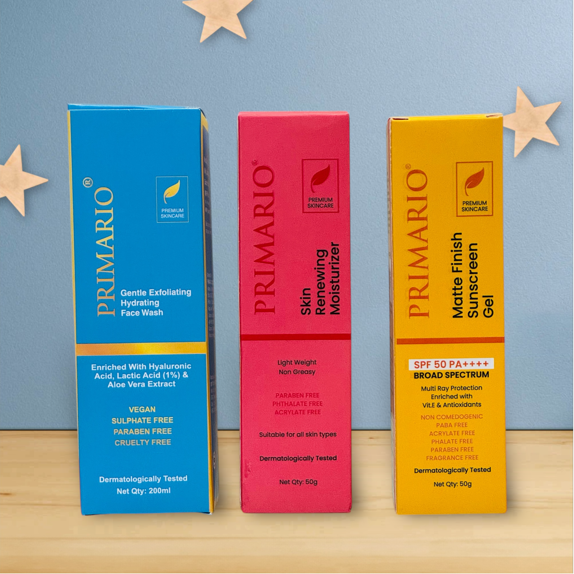 Primario gentle exfoliating and hydrating face wash is perfect for maintaining a healthy, glowing complexion. It softly removes dead skin cells and impurities, leaving your skin smooth and refreshed without causing irritation. Infused with hydrating ingredients, it replenishes moisture and prevents dryness. This dual- action formula improves skin texture, boosts radiance ensuring your skin feels soft and nourished after every wash.